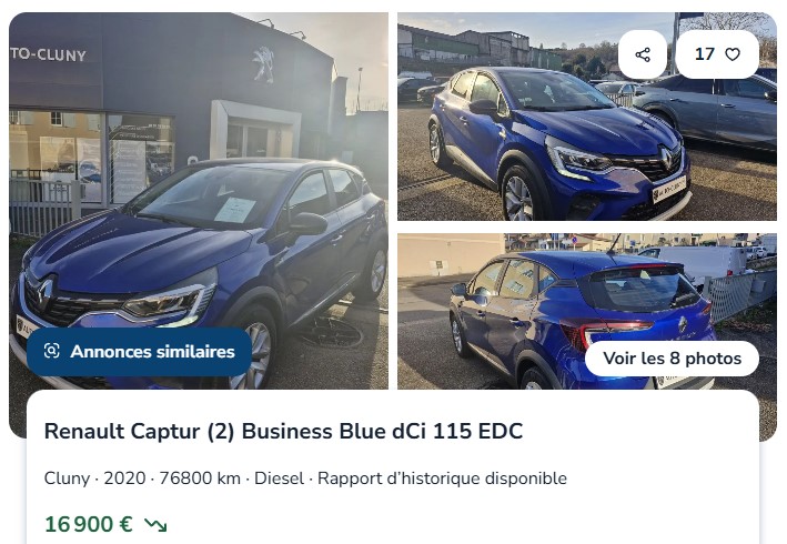 Auto-Cluny est aussi spécialisé dans la vente de voitures d’occasions : plutôt jeunes et faiblement kilométrées. Tant que possible avec l’historique d’entretien.